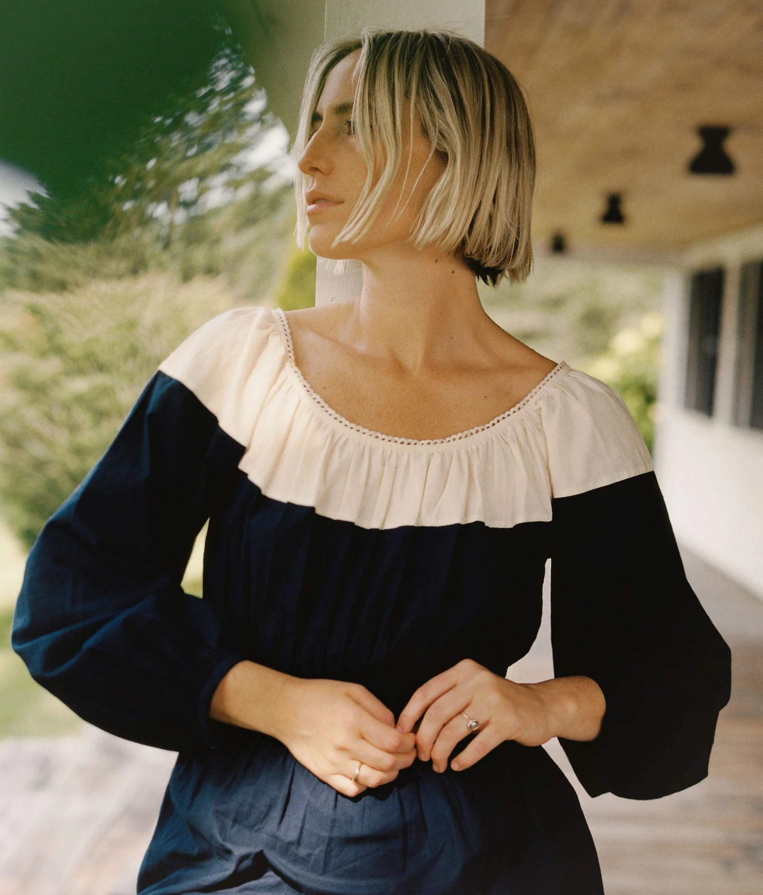 - Scooped out neckline