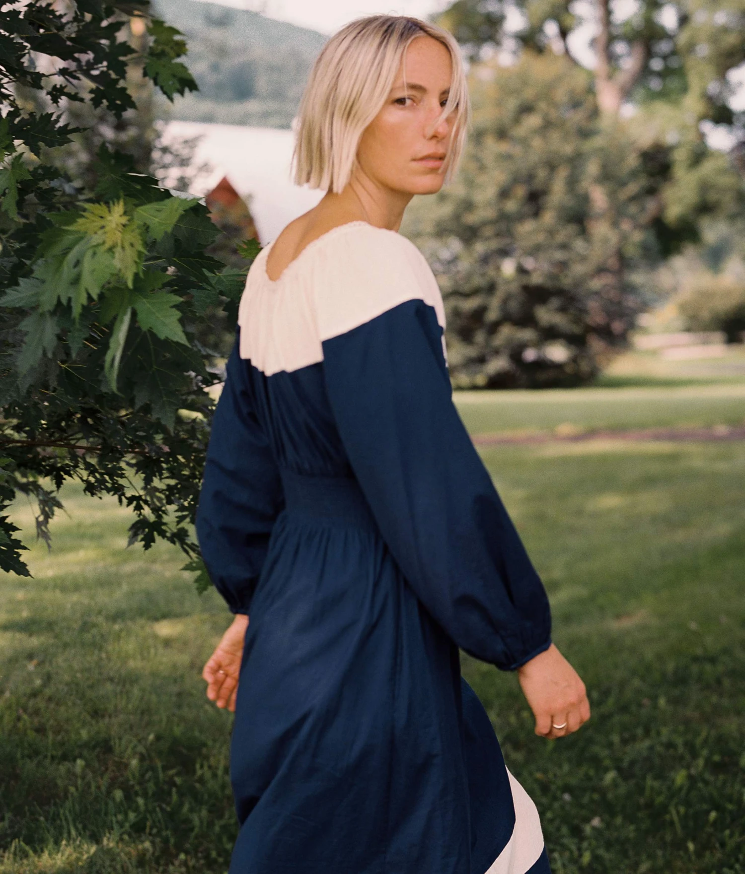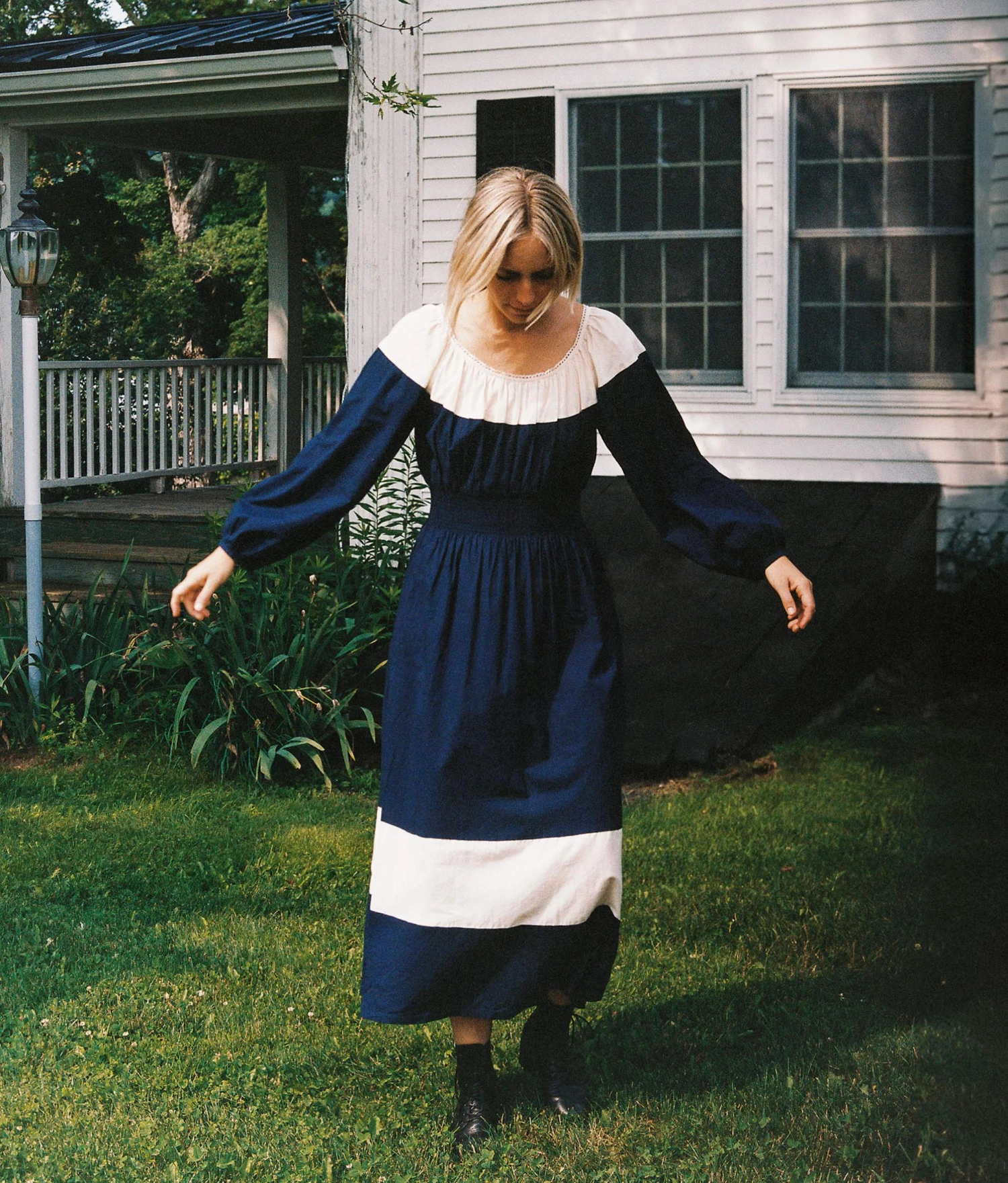 - Color blocked long sleeve dressÂ