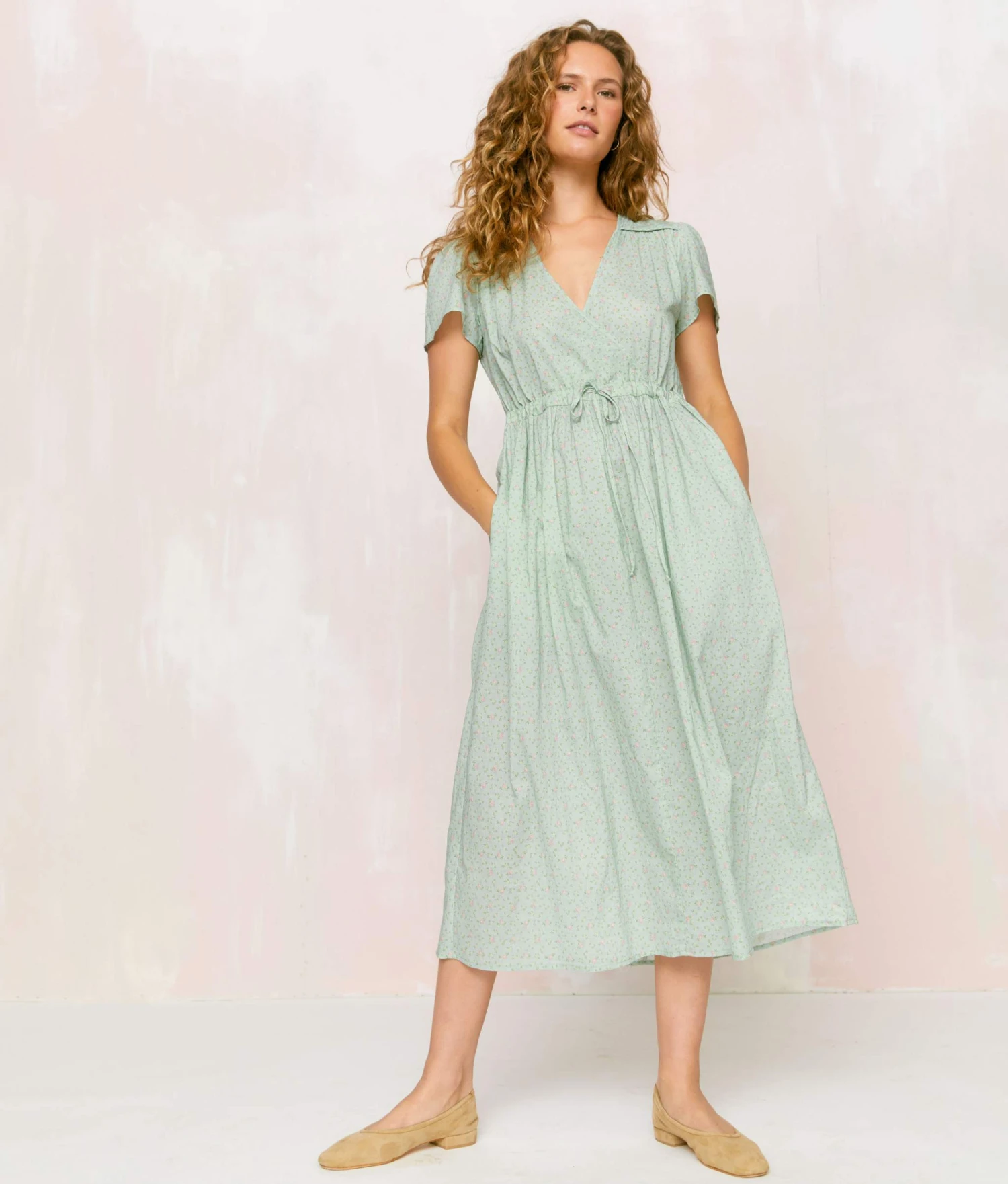 - Short-sleeved midi dress with pockets