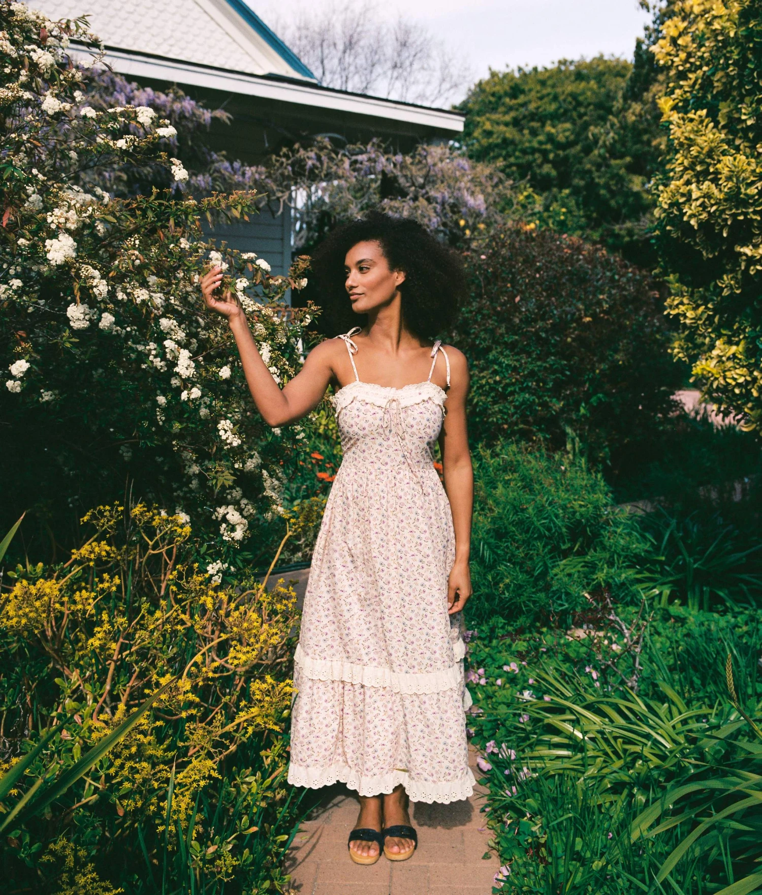 - Fitted bodice and intricate smocking on the back – runs narrow in the bodice, we recommend sizing up if you’re in between sizes!